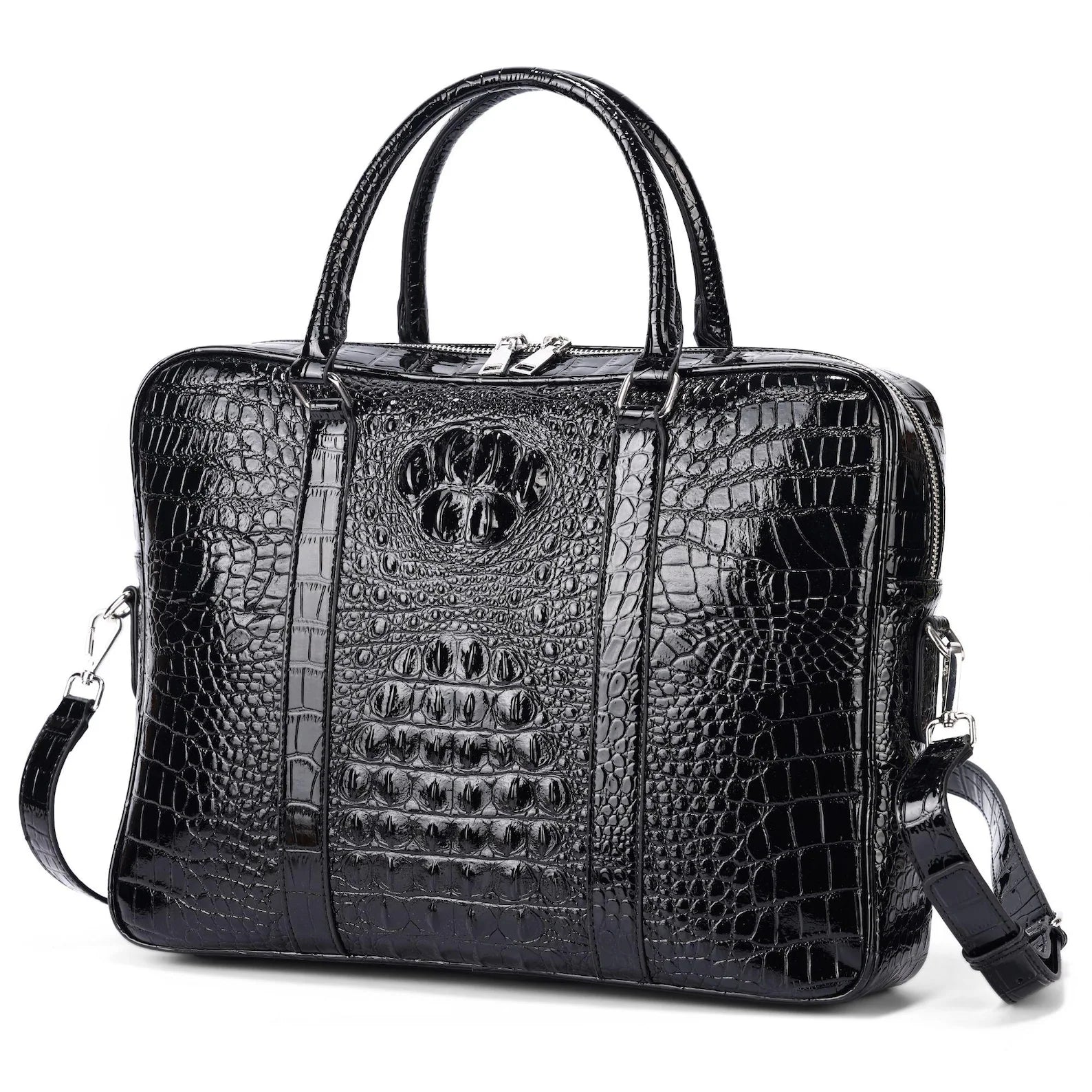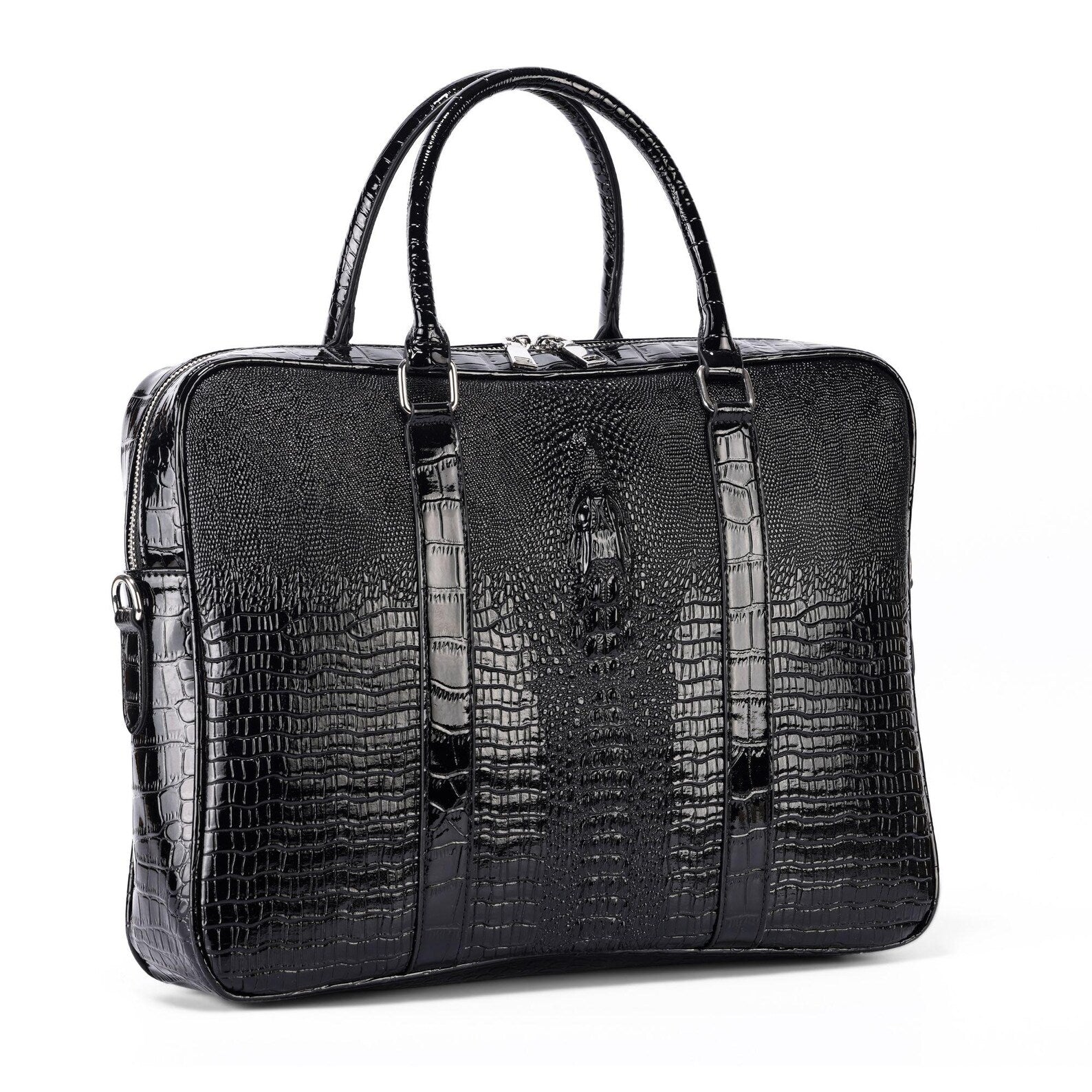 Crocodile Pattern PU Leather Laptop Bag -Business Briefcase with Shoulder Strap - Large Capacity Work Messenger Bag - Office & Travel Bag