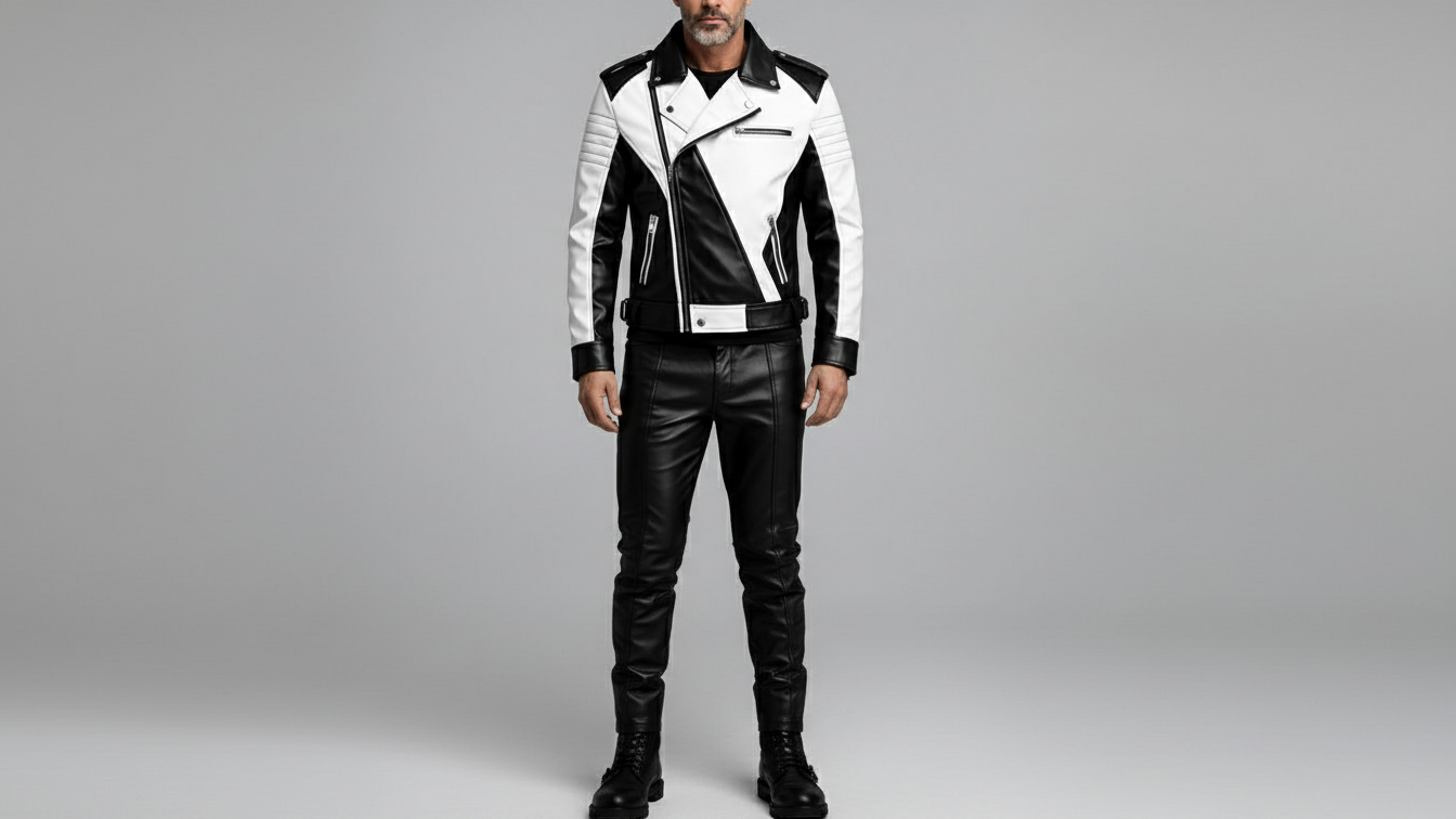 Designed for men who prefer sharp contrast with confident structure, this black and white leather jacket delivers a striking balance of edge and refinement. The asymmetrical front zip, bold color-block paneling, and clean tailoring create a powerful silhouette that stands out without feeling excessive.